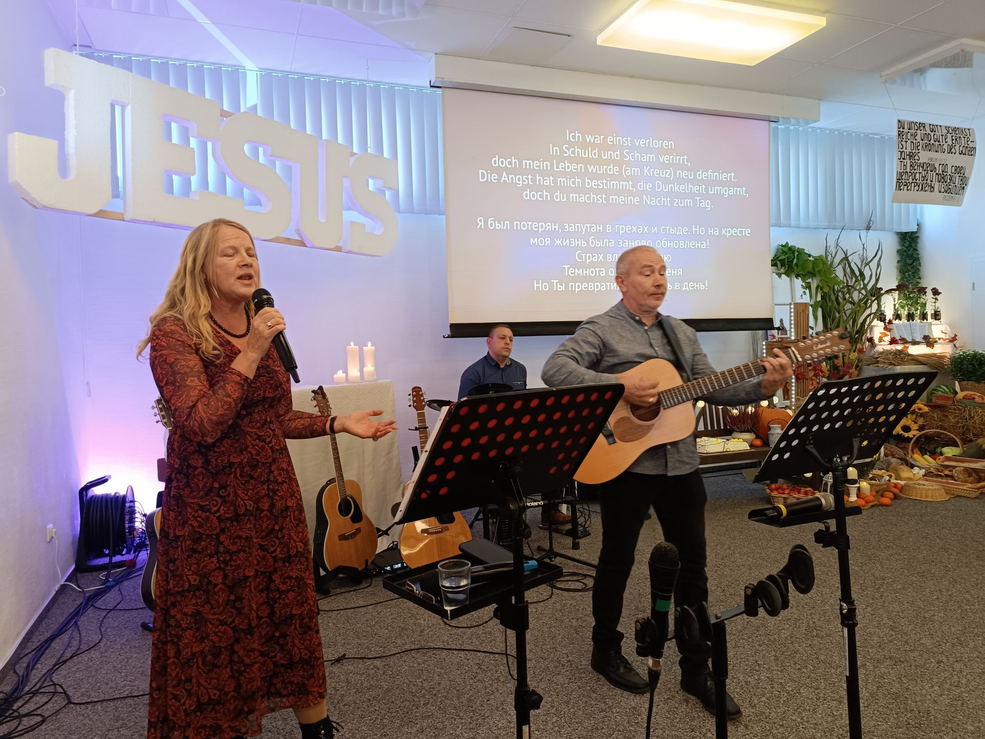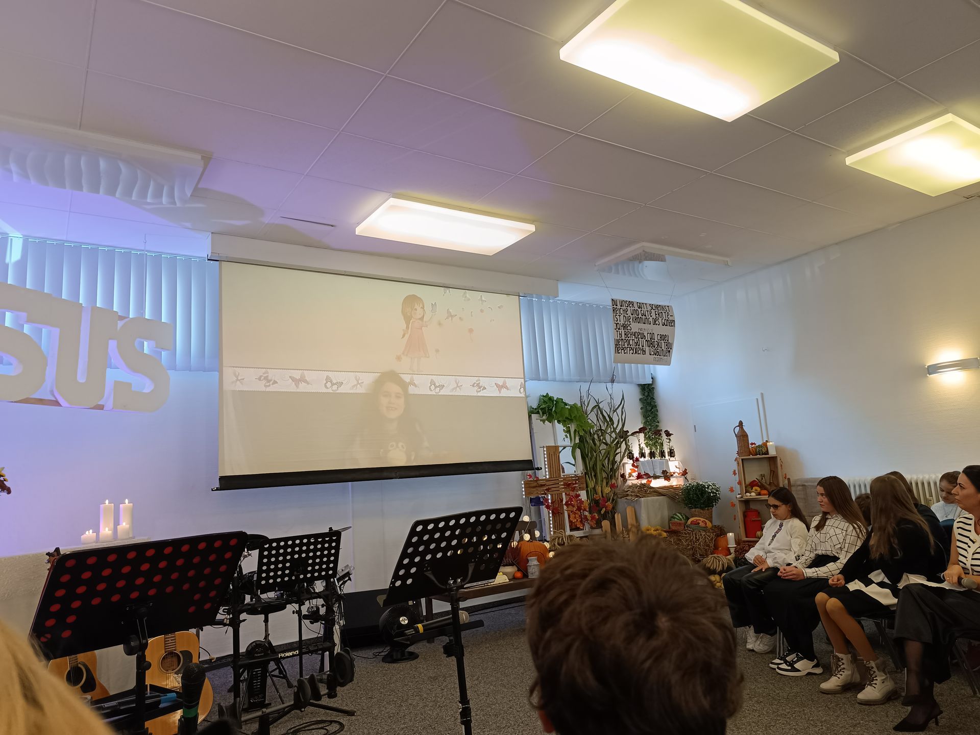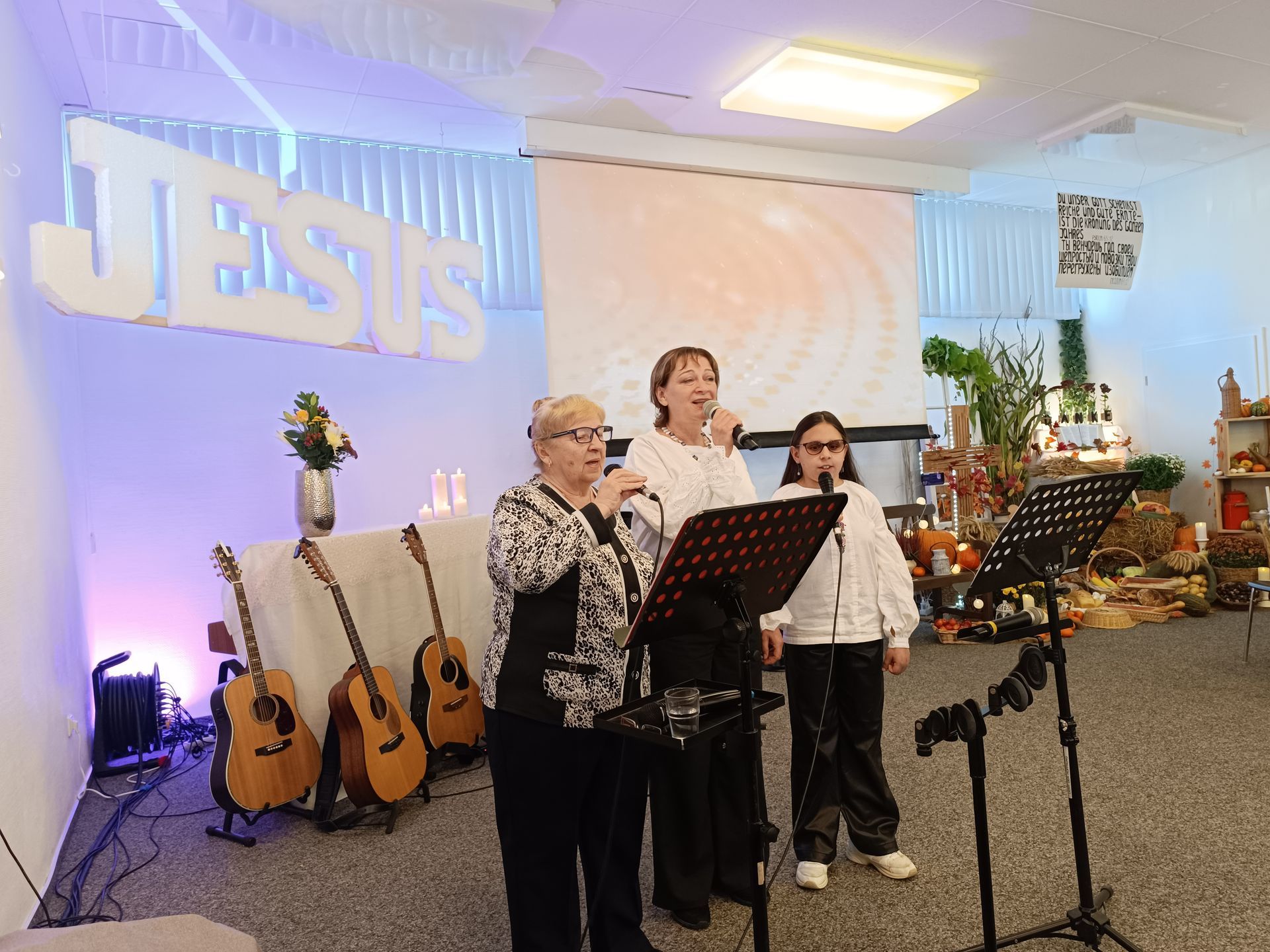 Das Programm war voller Freude und Herzlichkeit. Unsere Kinder lobten Gott auf ihren Musikinstrumenten, und ihr Auftritt berührte die Herzen aller Anwesenden. Wir hatten auch die Ehre, einem wunderschönen Familien-Trio zuzuhören, das geistliche Lieder vortrug. Ein besonders rührender Moment war die Video-Botschaft, die von unseren Kindern und Jugendlichen vorbereitet wurde. Sie teilten ihre Erlebnisse im Glauben mit uns und berichteten, wofür sie in ihrem Leben Gott dankbar sind. Es war ein aufrichtiges Zeugnis des Glaubens und der Dankbarkeit für Gottes Segen.