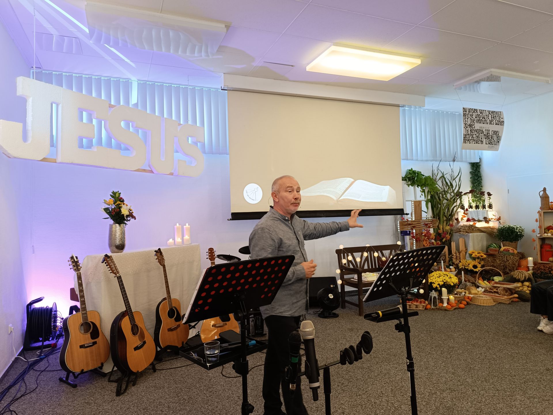 Am 6. Oktober 2024 feierte unsere Gemeinde das wunderschöne Erntedankfest, ein Fest der Dankbarkeit gegenüber Gott für alle Gaben, die Er uns in diesem Jahr geschenkt hat. Jeder von uns brachte Früchte seiner Arbeit mit – Obst, Gemüse und andere Erntegaben, die von unserem Dekorationsteam liebevoll dekoriert wurden und den Saal in eine gemütliche und festliche Atmosphäre verwandelten.